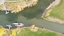 …und Mündung der Unstrut in die Saale bei Naumburg. Man beachte jeweils die unterschiedliche Färbung der sich vereinigenden Flüsse aufgrund der unterschiedlich hohen Sedimentfracht.