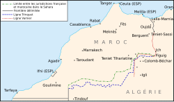 Verschiedene mögliche Grenzen, Ursache für den Algerisch-Marokkanischen Grenzkrieg 1963. Die umstrittene Region war, von nomadisierenden Stämmen abgesehen weitgehend menschenleer. Erst 1972 unterzeichnete Marokko einen Grenzvertrag mit Algerien, in dem es seine Ansprüche auf das Tindūf-Gebiet aufgab. Dieser Vertrag von Ifrane und die Ergebnisse der Grenzkommission wurde von Marokko erst 1989 ratifiziert.