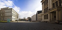 Universitätsplatz mit Löwengebäude, Auditorium maximum (Audimax), Juridicum, Franz-von-Liszt-Haus und Melanchthonianum
