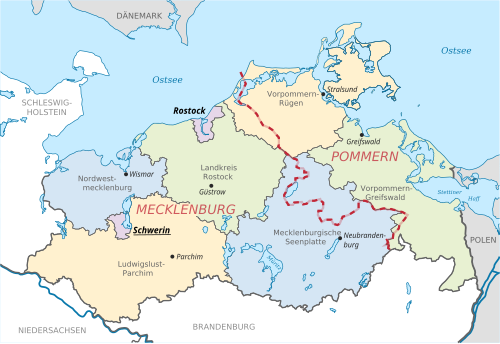 | Land Mecklenburg-Vorpommern Mäkelborg-Vörpommern (niederdeutsch) | |||