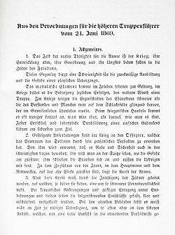Erste Seite Aus den Verordnungen für die höheren Truppenführer vom 24. Juni 1869 von Helmuth von Moltke