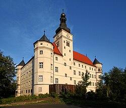 Von Dezember 1944 bis Januar 1945 bauten Insassen des KZ Mauthausen die Anlagen ab und stellten den Bauzustand von 1939 weitgehend wieder her. Ab März 1945 war im Schloss eine „Gauhilfsschule“ untergebracht.
