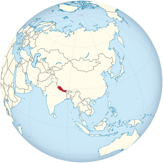 Nepal befindet sich in Südasien und erstreckt sich ca. vom 26. bis 30. nördlichen Breiten- und vom 80. bis 88. östlichen Längengrad. Nepal umfasst eine Fläche von 147.516 Quadratkilometern, wovon etwa 143.000 Quadratkilometer Landfläche und die restlichen 4.000 Quadratkilometer Binnengewässer sind. Die Ost-West-Ausdehnung beträgt 885 Kilometer und die maximale Nord-Süd-Ausdehnung, die in Westnepal erreicht wird, rund 241 Kilometer. Nepal liegt zwischen der Region Tibet im Norden und Indien im Süden. Nepal grenzt (von West nach Ost) an die indischen Bundesstaaten Uttarakhand, Uttar Pradesh, Bihar, Westbengalen sowie an das der Indischen Union beigetretene ehemalige Königreich Sikkim an.
