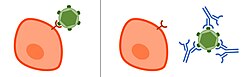 Die Virusbindung an die Zelle (links) wird durch NAb gehemmt (rechts)