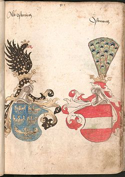 ![]() | ![]() im Babenberger-Stammbaum um 1490 dem Markgrafen Adalbert (um 985–1055) zugeschrieben – erste Wappen kamen jedoch erst etwa 200 Jahre nach Adalbert auf |