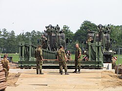 Niederländische Soldaten beim Bau einer Bailey-Brücke über die Oude IJssel, Ulft