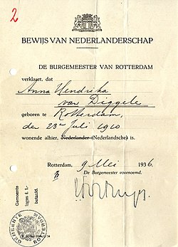 Nachweis zur niederländischen Staatsangehörigkeit aus dem Jahr 1936