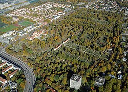 Der Nordfriedhof von Süden aus der Luft gesehen