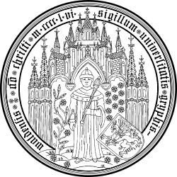 Hauptgebäude der Universität Greifswald am Rubenowplatz, Altstadt-CampusSiegel der UniversitätHeinrich Rubenow, Bürgermeister Greifswalds, Gründer und erster Rektor der Universität
