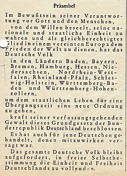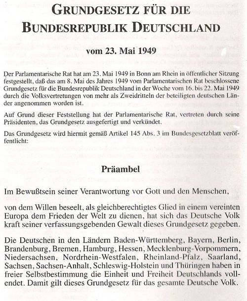 Die alte Präambel vom 23. Mai 1949 hatte folgenden Wortlaut: