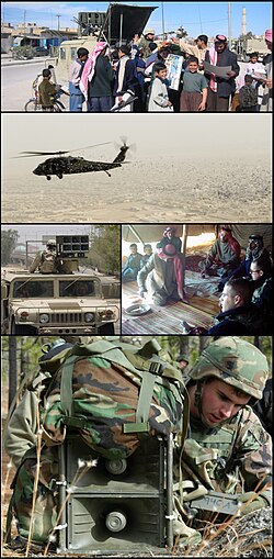 Collage verschiedener PSYOP-Operationen der U.S. Army im Irakkrieg 2003