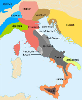 Sprachgebiete im Italien des 6. Jahrhunderts v. Chr.