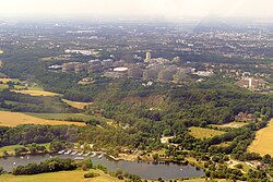 Die Ruhr-Universität Bochum aus der Luft mit dem Kemnader See im Vordergrund