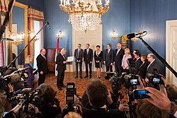 Am 27. Juni 2022 wurde der Vertrag unterschrieben, am 28. Juni 2022 wurde Hendrik Wüst (CDU) im ersten Wahlgang zum Ministerpräsidenten gewählt und am 29. Juni 2022 wurde das erste schwarz-grüne Kabinett in NRW ernannt und vereidigt.