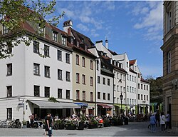 Die Nordseite des Platzes ist geprägt von einem dreigeschossigen und fünf viergeschossigen Bürgerhäusern, die unter Denkmalschutz stehen. Diese sind im Kern im 15./16. Jahrhundert als sogenannte Seifensiederhäuser entstanden, da damals die Isar noch unmittelbar östlich der Stadtmauer floss. Die heute teils noch erhaltene Bausubstanz im Baustil der Neorenaissance stammt größtenteils aus den Jahren 1761 bis 1890. Sie sind die älteste geschlossen erhaltene Häuserzeile in München.