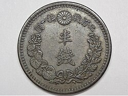 ½ Sen, Japan, 1881, Drache in Perlkreis