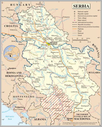 Anmerkung: Die Beschreibung der Geographie Serbiens umfasst auch das Gebiet des völkerrechtlich umstrittenen Kosovo.