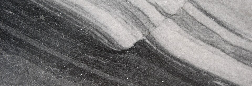 Kleinmaßstäbige Störung im Lindewiese-Marmor aus dem Altvatergebirge, Tschechien.