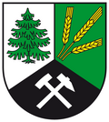 Blasonierung: „Im Göpelschnitt geteilt, vorn in Silber eine ausgerissene grüne Tanne, hinten in Grün schräglinks gestellt gefächert drei goldene Ähren, unten in Schwarz ein silbernes Bergmannsgezähe.“