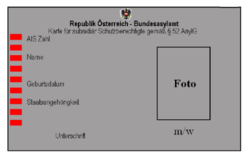 Der Status wird mit einem Ausweis in brauner Farbe dokumentiert, seit 2009 wird in der Regel auch ein Fremdenpass ausgestellt.