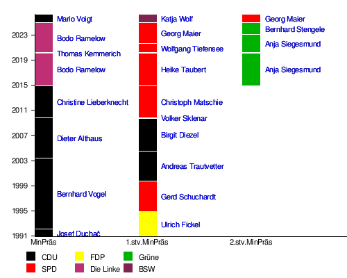 | 11 | Kabinett Voigt (Minderheitsregierung) | seit 2024 | Mario Voigt (CDU) | CDU, BSW, SPD |