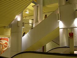 - Verteilerebene mit Auf- und Abgängen zu den Bahnsteigen der A-, B- und C-Strecke.