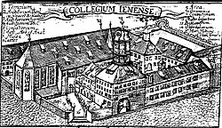 Das Jahr 1558 gilt als Gründungsjahr der Universität, die damals Salana bzw. Collegium Jenense genannt wurde. Schon 1547 hatte der Kurfürst Johann Friedrich von Sachsen, der sich in der Haft von Kaiser Karl V. befand, den Plan entwickelt, eine Universität aufzubauen, nachdem ihm die Kurwürde genommen worden und damit auch die Universität Wittenberg an den bisherigen Herzog von Sachsen, Moritz von Sachsen, verloren gegangen war. Dieser Plan wurde von seinen drei Söhnen ausgeführt, die am 19. März 1548 in dem Weinbauernstädtchen Jena im ehemaligen Dominikanerkloster eine „Höhere Landesschule“ (Paedagogium provinciale) gründeten. In der Stiftungsurkunde des römisch-deutschen Königs und späteren Kaisers Ferdinand I. wurden ihr am 15. August 1557 die Rechte einer Universität verliehen, die mit ihrer feierlichen Eröffnung am 2. Februar 1558 in Anwesenheit des regierenden Herzogs Johann Friedrich auch ihren Lehrbetrieb aufnahm. Mit der Existenz einer eigenen Universität sollte die Ausbildung von Juristen, Lehrern und besonders Geistlichen Augsburgischen Bekenntnisses in eigener, ernestinischer Hand sichergestellt werden.