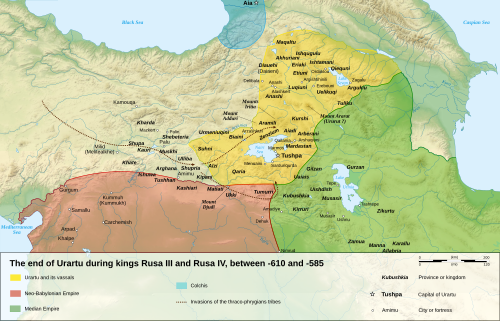 Karte des Urartäischen Reiches in den letzten Jahren seines Bestehens zwischen 610 und 585 v. Chr.