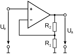 Spannungsfolger setzen nicht die Spannung herauf, sondern den Strom, wobei die Eingangsspannung kaum belastet wird. Die Ausgangsspannung ist annähernd gleich der Eingangsspannung, sie „folgt“ der Eingangsspannung. Spannungsfolger werden in Endstufen, in Elektretmikrofonen und als Elektrometerverstärker eingesetzt.