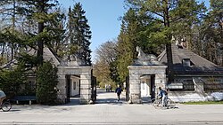 • In einer durch die Tischlerstraße vom Waldfriedhof getrennten Waldlichtung wurde 1965 die Kriegsgräberstätte am Waldfriedhof, mit 3540 Gräbern eine der größten in Deutschland, fertiggestellt. Sie wird seitdem vom Volksbund Deutsche Kriegsgräberfürsorge betreut. Die hier bestatteten 1988 Gefallenen des Ersten Weltkriegs und 1552 Opfer des Zweiten Weltkriegs (Soldaten, Kriegsgefangene und Zivilisten) waren zunächst auf zahlreichen anderen Friedhöfen in Oberbayern und Schwaben beigesetzt worden. Mehr als 300 der hier Bestatteten sind ausländische Kriegsopfer (vor allem russische).
