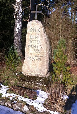 Nördlich der Kirche befindet sich ein Findling als Kriegerdenkmal für die Toten der Weltkriege. Der Findling ist mit der Inschrift 1914–18 / DEINE TOTEN WERDEN LEBEN / 1939–45 (Jes. 26,19 EU) versehen und mit einem Kreuz bekrönt.