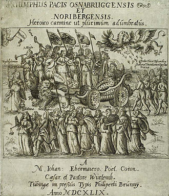Triumph des Osnabrücker und Nürnberger Friedens, allegorische Darstellung des Religionsfriedens, 1649.