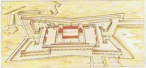 Der Urentwurf sah vor, dass die Zitadelle die gesamte Nordseite der Stadt abdecken sollte, sie wäre dann etwa doppelt so groß geworden wie tatsächlich ausgeführt. Geldmangel diktierte eine Reduktion, und sowohl das Schloss als auch die Zitadelle mussten verkleinert werden. Der Bau nahm etwa dreißig Jahre in Anspruch, gegen 1580 waren die Stadtbefestigung und die Zitadelle fertiggestellt. Das ganze Straßensystem der als unregelmäßiges Fünfeck angelegten Stadt mit eigener Befestigung war so ausgelegt, dass sie von der Zitadelle aus beherrscht werden konnte. Schusslinien erstreckten sich von der Zitadelle weg quer durch die Stadt, um Aufstände der Bürger oder die Nutzung durch feindliche Soldaten zu verhindern – die Zitadelle war das Zentrum der Macht in der Stadt.