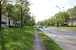 Der Marsplatz mit Marsstraße im Zentrum des Stadtbezirks. Links das Wittelsbacher-Gymnasium