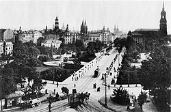 Die den Albertplatz querende Hauptstraße im Jahr 1905, rechts die Dreikönigskirche